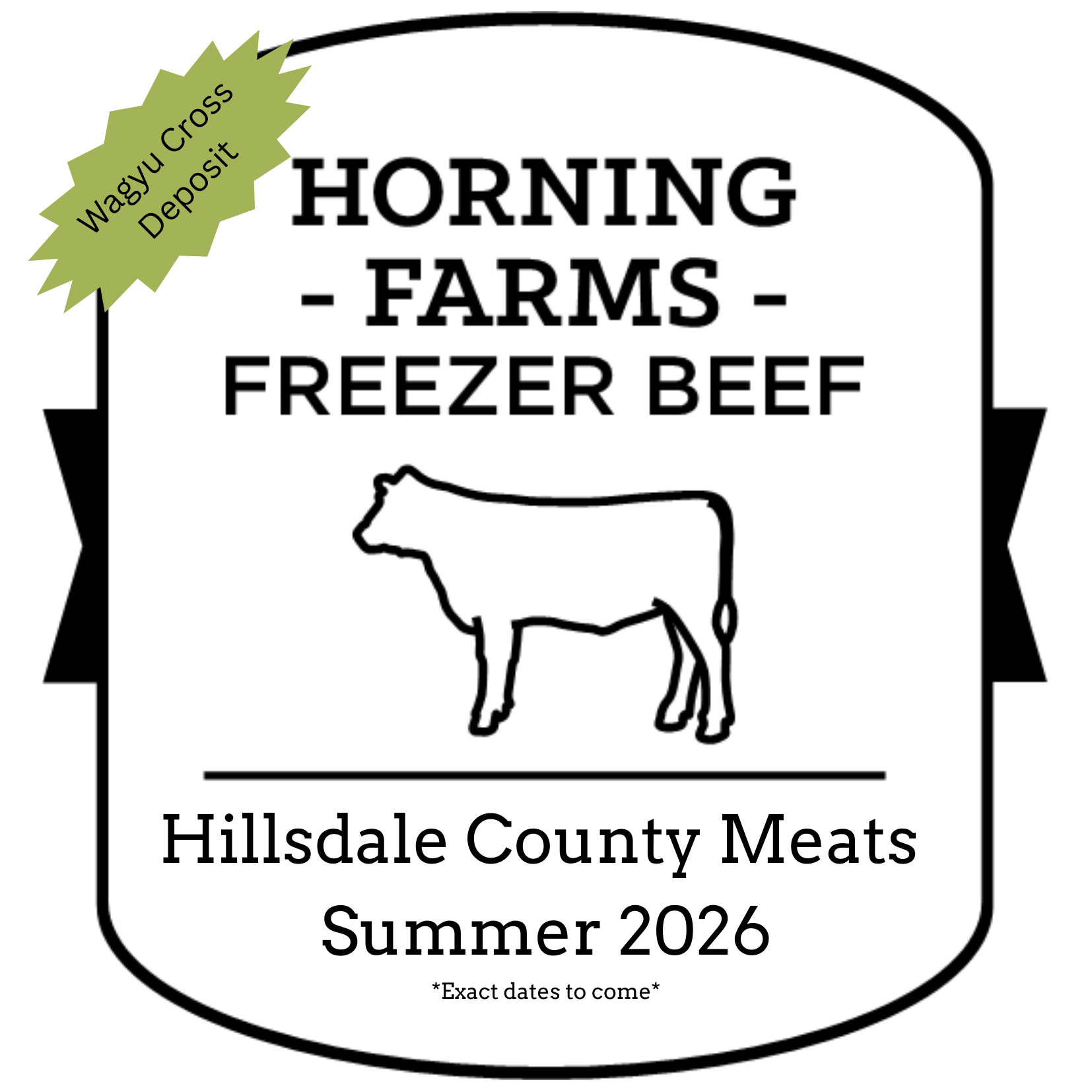 This deposit secures processing for Wagyu cross beef at Hillsdale County Meats. We expect them to be ready for processing in June or July, and we will have exact dates to come.